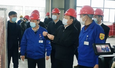 2月26日 ,湖州市市委副書記、代市長王綱一行蒞臨久立電氣調(diào)研考察。王市長在久立集團董事長蔡興強、久立電氣總經(jīng)理徐珺文的陪同下,參觀了連鑄連軋生產(chǎn)線、精密導線生產(chǎn)線等。蔡總、徐總分別針對集團復工過程、