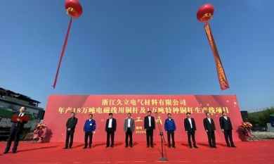 4月20日,集團下屬子公司-浙江久立電氣材料有限公司年產(chǎn)18萬噸電磁線用銅桿及1萬噸特種銅桿產(chǎn)品生產(chǎn)線項目開工儀式在湖州安吉舉行。
